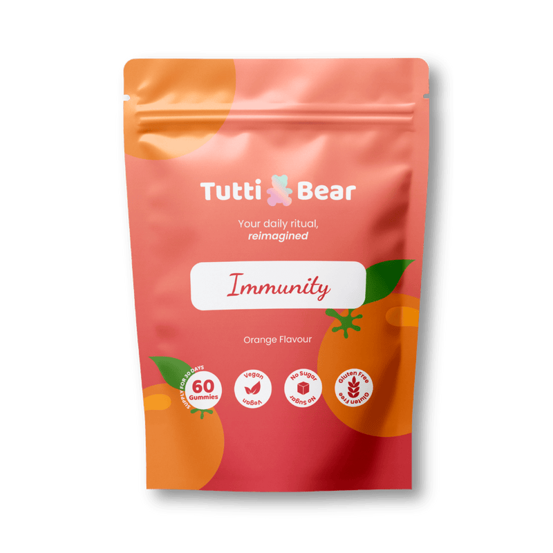 Presentamos las Gominolas de Inmunidad TuttiBear: tu escudo diario en formato delicioso. Hemos formulado una combinación completa con Equinácea, Zinc y Vitamina C, reforzada con Selenio y Probióticos. Estas sabrosas gominolas de naranja, sin azúcar, hacen que el cuidado de la inmunidad sea sencillo y agradable.